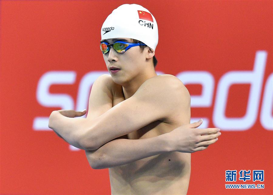 9月14日,林哲其在比赛前。 当日,在卡塔尔首都多哈举行的国际泳联游泳世界杯卡塔尔站男子1500米自由泳决赛中,中国选手林哲其以15分57秒24的成绩获得铜牌。 新华社发(尼库摄)