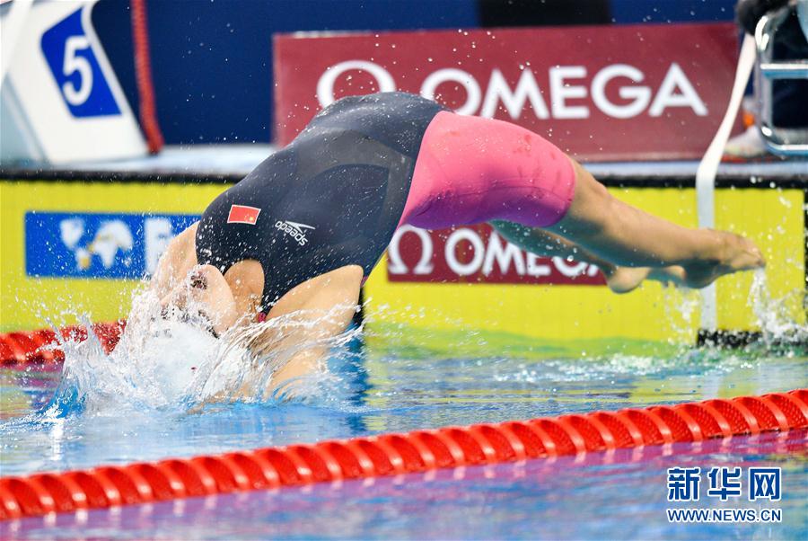 9月14日,姜昱如在比赛中入水。 当日,在卡塔尔首都多哈举行的国际泳联游泳世界杯卡塔尔站女子100米仰泳决赛中,中国选手姜昱如以1分02秒47的成绩获得铜牌。 新华社发(尼库摄)