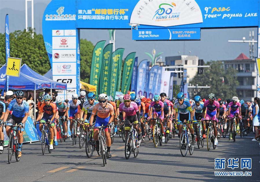 9月15日,选手们从比赛起点出发。 当日,2018第九届环鄱阳湖国际自行车大赛宜春靖安站比赛在江西省宜春市靖安县举行。 新华社记者万象摄