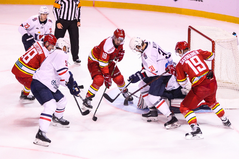 人民网北京9月18日电 9月17日19点30分,2018/19赛季大陆冰球联赛(KHL)继续展开争夺,昆仑鸿星万科龙队在上海三林体育中心迎来了本次主场系列赛的第二个对手——布拉迪斯拉发老鹰队。