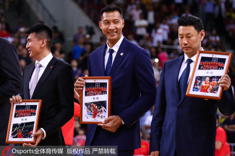 人民网北京9月18日电(杨磊) 9月17日晚,2019年男篮世界杯预选赛在五棵松体育馆进行,赛前,2008年奥运会中国男、女篮核心成员重聚五棵松,共同回忆北京奥运会的光荣和记忆。