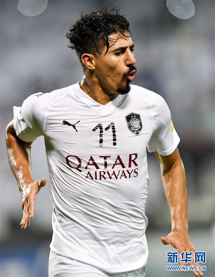 9月17日,阿尔萨德队球员邦尼德加在比赛中庆祝进球。 当日,在卡塔尔首都多哈进行的2018年亚冠联赛四分之一淘汰赛第二回合比赛中,卡塔尔阿尔萨德队主场以2比2战平伊朗德黑兰独立队,从而以两回合总比分5比3晋级半决赛。 新华社发(尼库摄)
