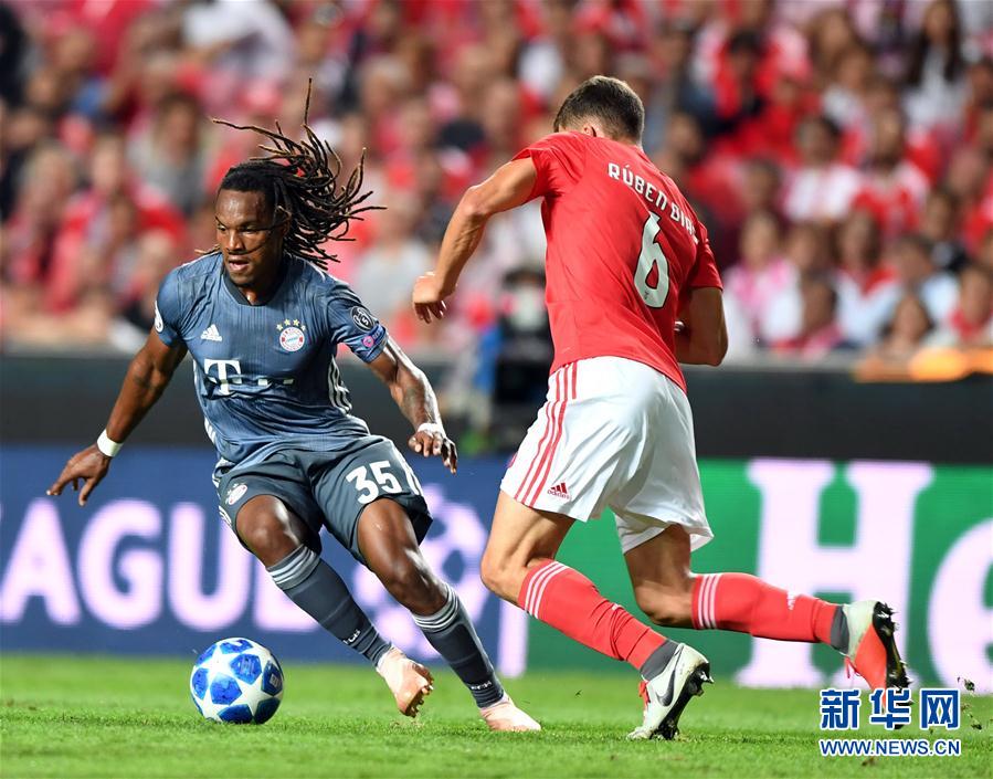 9月19日,本菲卡队球员迪亚斯(右)与拜仁队球员雷纳托·桑切斯在比赛中拼抢。 当日,在葡萄牙首都里斯本举行的2018-2019赛季欧洲足球冠军联赛E组比赛中,德甲拜仁慕尼黑队客场以2比0战胜葡甲本菲卡队。 新华社记者张立云摄