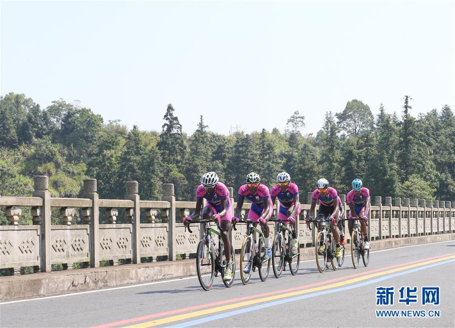 9月20日,参赛选手在比赛中骑行。 当日,2018第九届环鄱阳湖国际自行车大赛新余仙女湖站比赛在江西省新余市举行。当日的比赛为团体计时赛,来自荷兰的猴城乐园车队获得冠军。 新华社记者潘思危摄