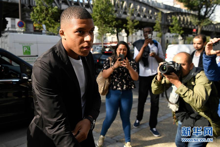 ↑9月20日,巴黎圣日耳曼队球员姆巴佩抵达法国足球协会总部。新华社/法新