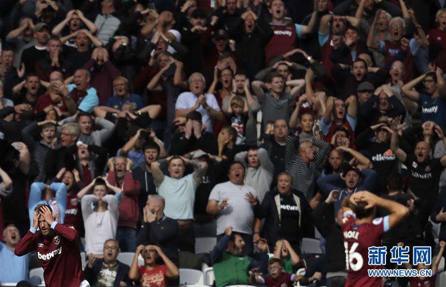 ↑9月23日,西汉姆联队球员亚尔莫连科(左)在比赛中错失进球机会。 当日,在2018-2019赛季英超联赛第六轮比赛中,切尔西队客场以0比0战平西汉姆联队。 新华社/美联