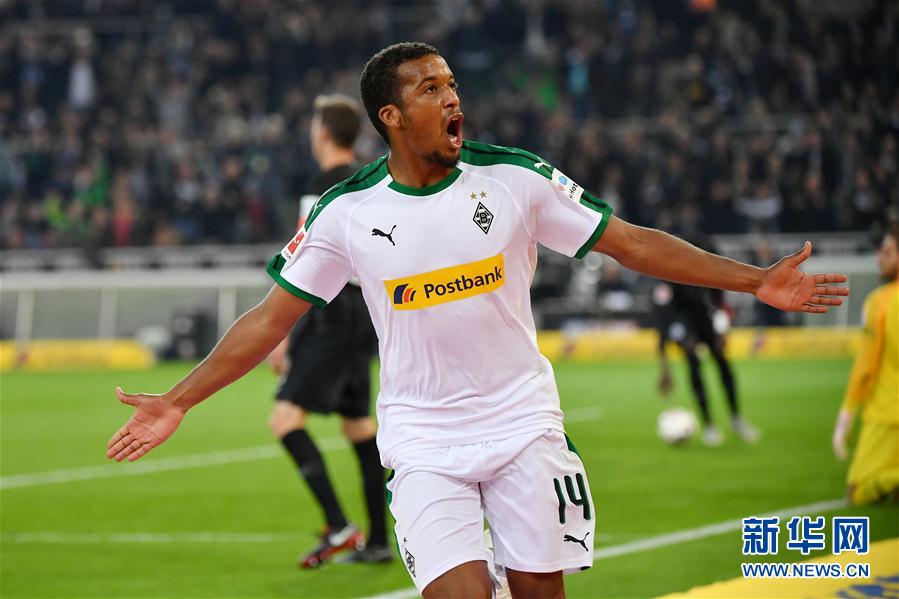 9月26日,门兴格拉德巴赫队球员普莱亚在比赛中庆祝进球。 当日,在2018-2019赛季德国足球甲级联赛第五轮比赛中,门兴格拉德巴赫队主场以3比1战胜法兰克福队。 新华社发(乌尔里希·胡夫纳格尔摄)