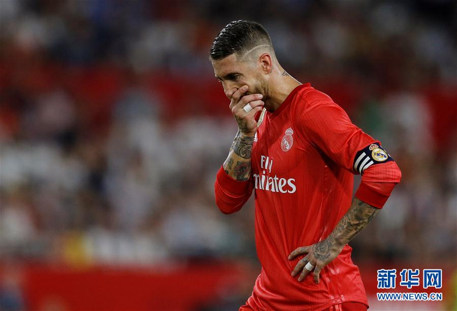 9月26日,皇马队球员拉莫斯在比赛中。 当日,在2018-2019赛季西甲联赛第六轮比赛中,皇家马德里队客场以0比3不敌塞维利亚队。 新华社/路透