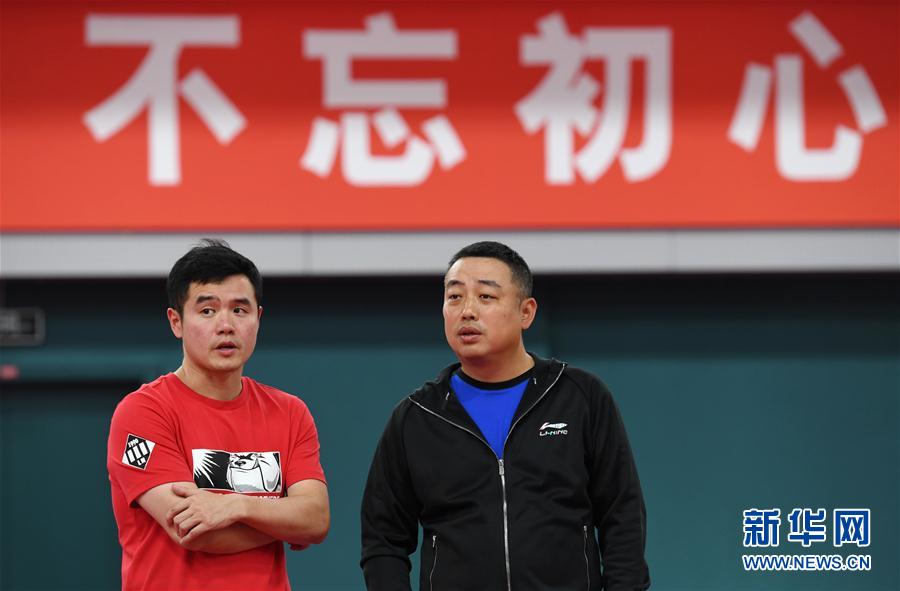 ↑9月27日,刘国梁(右)与刘国正观看球员训练。新华社记者张晨霖摄