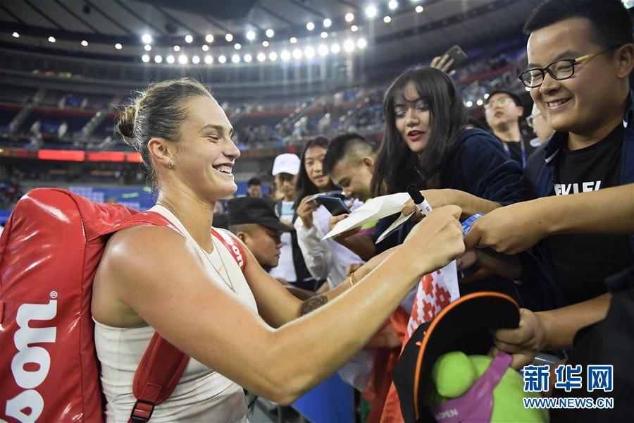 9月27日,萨巴伦卡在比赛后为球迷签名。 当日,在武汉国际网球中心举行的2018年WTA武汉网球公开赛单打四分之一决赛中,白俄罗斯选手萨巴伦卡以2比0战胜斯洛伐克选手齐布尔科娃,晋级四强。 新华社记者薛玉斌摄