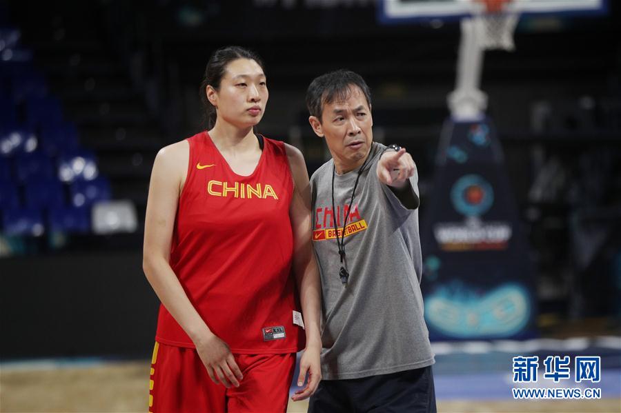 9月27日,中国队主教练许利民(右)在训练中指导刘佳岑。 当日,中国女篮在西班牙特内里费岛进行适应场地训练,备战将在28日举行的与澳大利亚队的女篮世界杯四分之一决赛。 新华社记者郑焕松摄