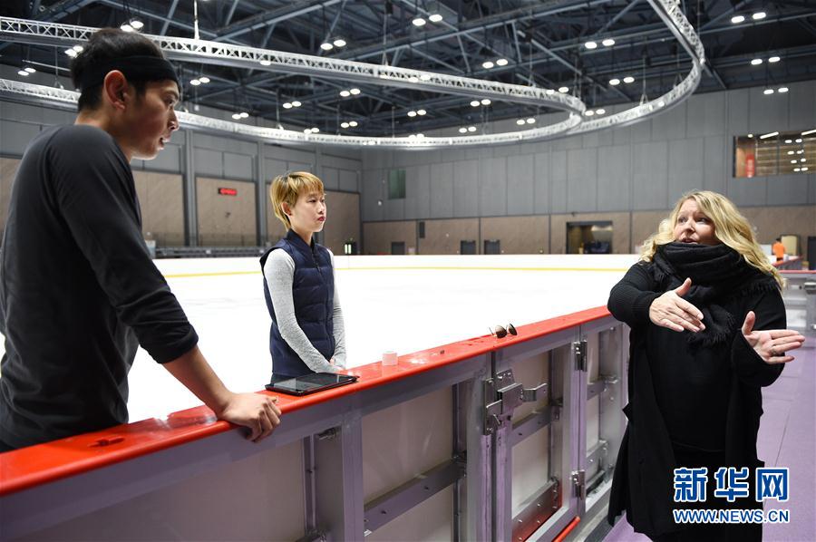 9月28日,国际著名编舞劳瑞·妮可(右)在训练课上指导彭程(中)、金杨。 新华社记者鞠焕宗摄