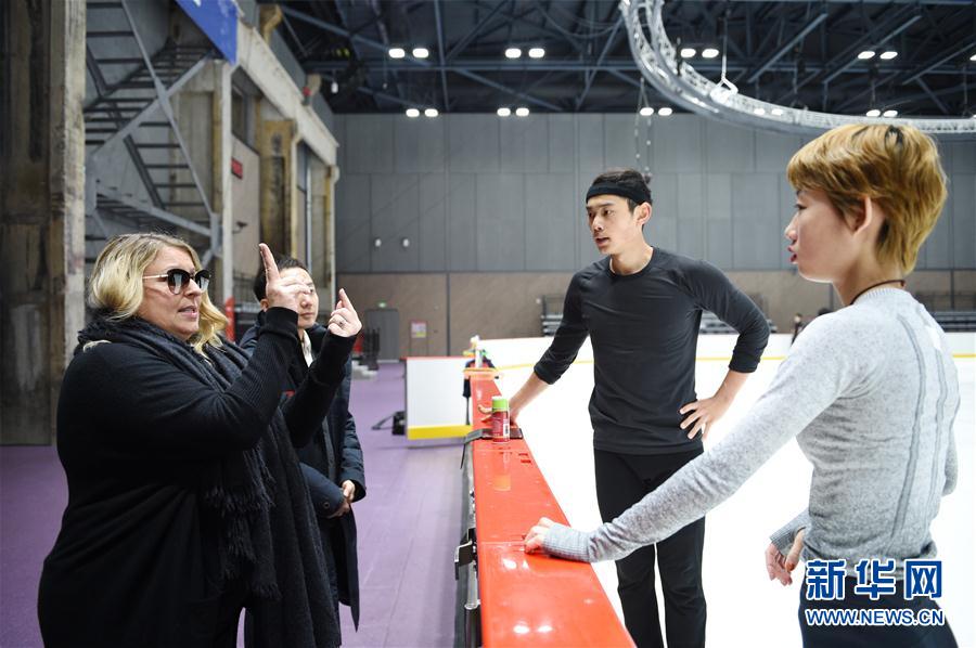 9月28日,国际著名编舞劳瑞·妮可(左一)在训练课上指导彭程(右一)、金杨(右二)。 新华社记者鞠焕宗摄