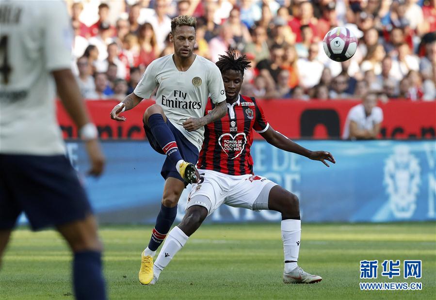 ↑9月29日,巴黎圣日耳曼队球员内马尔(左)与尼斯队球员塔梅斯在比赛中拼抢。 当日,在2018-2019赛季法国足球甲级联赛第八轮比赛中,巴黎圣日耳曼队客场以3比0战胜尼斯队。 新华社发(克里斯托弗·珀蒂诺摄)