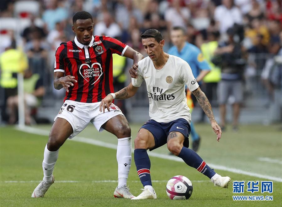 ↑9月29日,巴黎圣日耳曼队球员迪马利亚(右)与尼斯队球员马奥里达在比赛中争抢。 当日,在2018-2019赛季法国足球甲级联赛第八轮比赛中,巴黎圣日耳曼队客场以3比0战胜尼斯队。 新华社发(克里斯托弗·珀蒂诺摄)