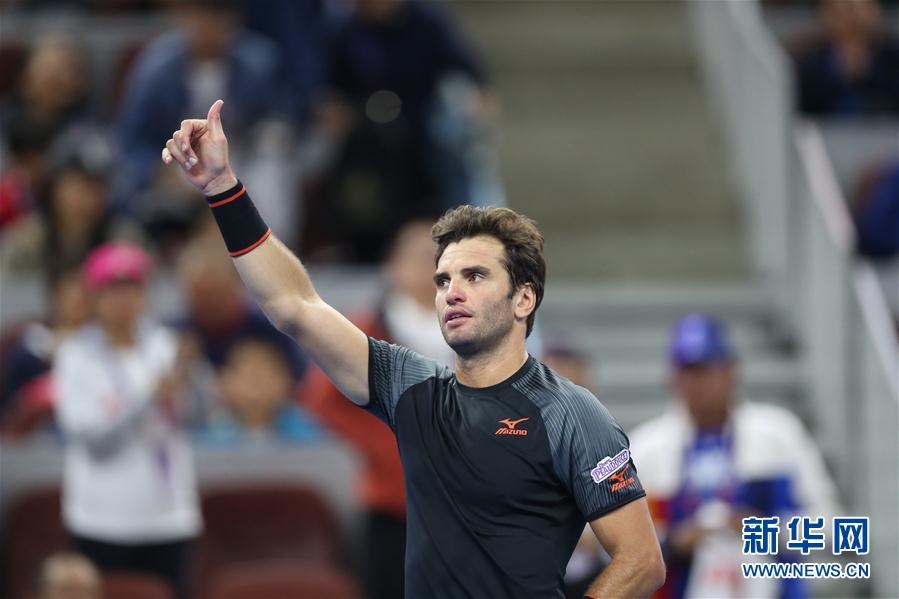 10月1日,贾兹里在比赛后庆祝胜利。 当日,在2018年中国网球公开赛男单第一轮比赛中,中国选手吴易昺以0比2不敌突尼斯选手贾兹里,无缘下一轮。 新华社发(宋彦桦摄)