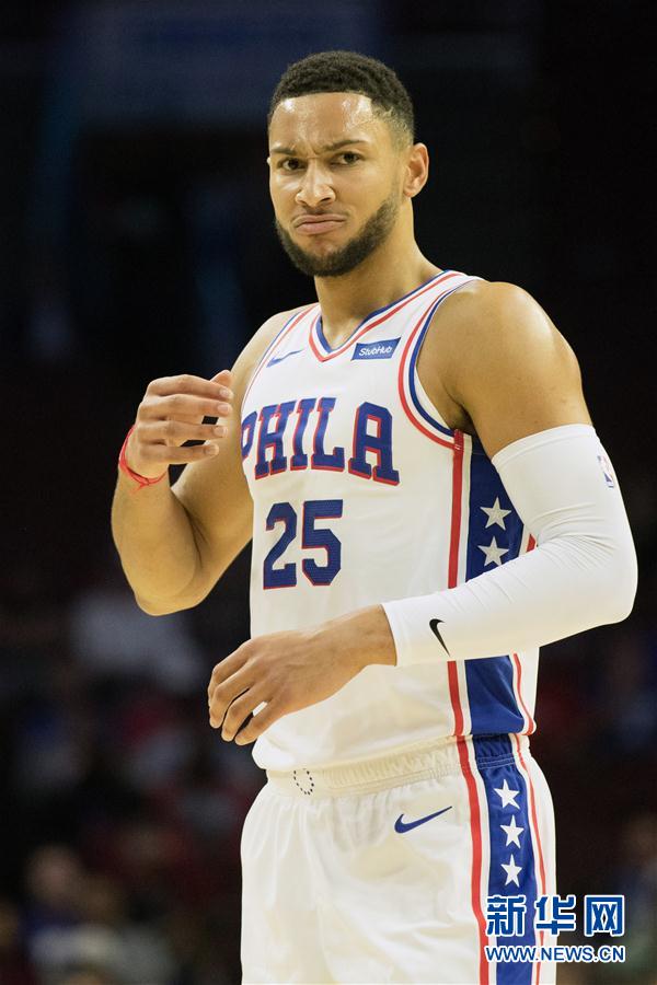 10月1日,76人队球员西蒙斯在比赛中被击中脸部后。 当日,在NBA季前赛中,费城76人队主场以120比114战胜奥兰多魔术队。 新华社/路透