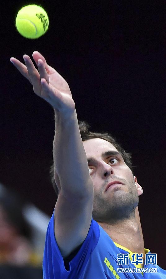 10月2日,拉莫斯在比赛中发球。 当日,在2018年中国网球公开赛男单第一轮比赛中,阿根廷选手德尔波特罗以2比0击败西班牙选手拉莫斯,晋级下一轮。 新华社记者刘金海摄