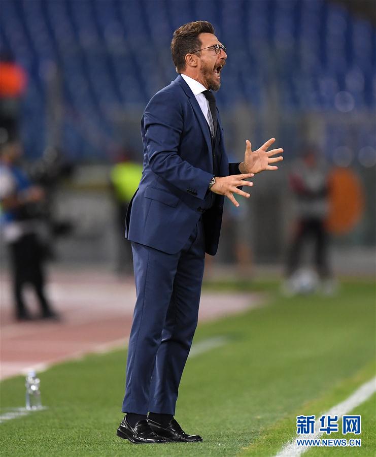 10月2日,罗马队主教练迪弗朗西斯科在场边指挥。 当日,在2018-2019赛季欧冠小组赛G组第二轮比赛中,罗马队主场以5比0战胜比尔森胜利队。 新华社发(阿尔贝托·林格里亚摄)