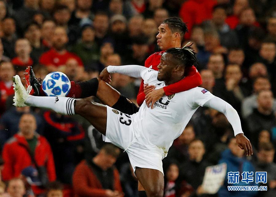 10月2日,曼联队球员球员斯莫林(后)与瓦伦西亚队球员巴舒亚伊在比赛中拼抢。 当日,在2018-2019赛季欧洲足球冠军联赛H组第二轮比赛中,英超曼彻斯特联队主场0比0战平西甲瓦伦西亚队。 新华社/路透