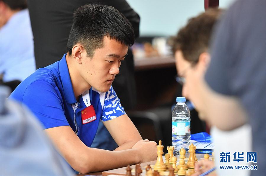 10月2日,中国男队选手丁立人在比赛中。 当日,2018国际象棋奥林匹克团体赛在格鲁吉亚巴统结束了第八轮较量,中国男队最终以2.5比1.5战胜荷兰男队。 新华社发(塔穆娜摄)