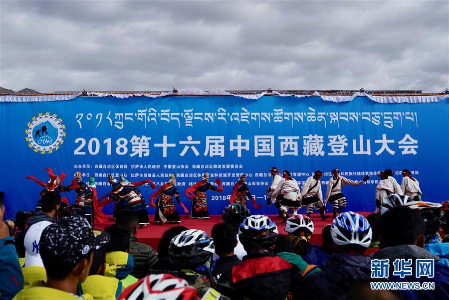 图为10月3日拍摄的第十六届西藏登山大会开幕式现场。 当日,第十六届西藏登山大会在海拔4300米的西藏自治区拉萨市当雄县羊八井高山训练基地拉开帷幕,超过200名户外爱好者共聚高原,享受多种户外运动的乐趣。 新华社记者普布扎西摄