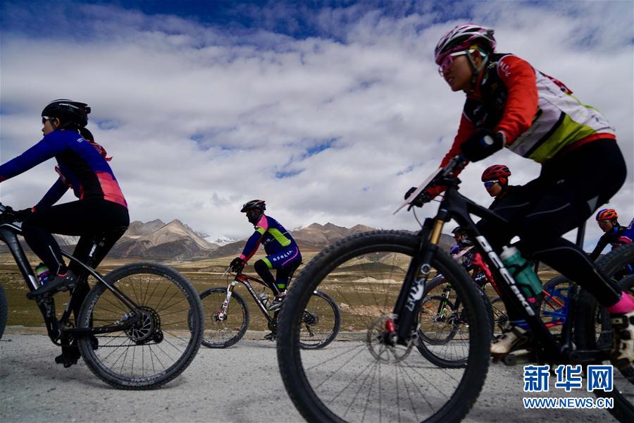 10月3日,参赛选手在第十六届西藏登山大会的自行车越野挑战赛中。 新华社记者普布扎西摄
