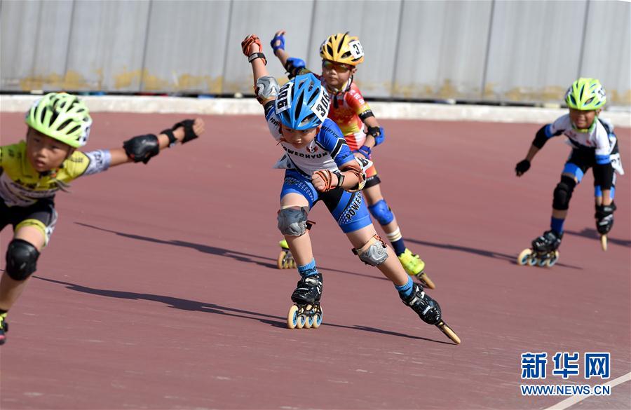 10月4日,选手在少男丁组速度轮滑比赛中。新华社记者郭晨摄