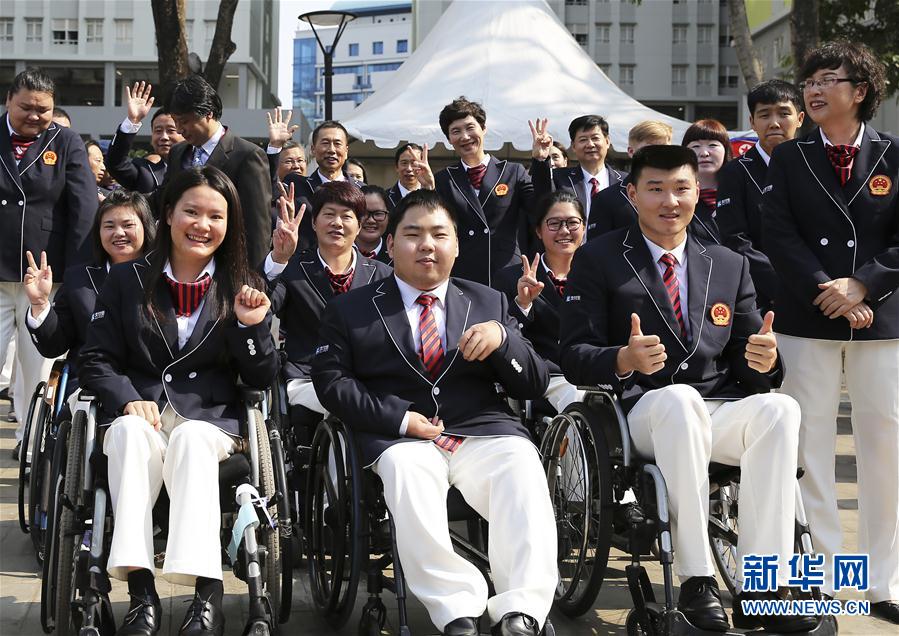 第三届亚残运会中国体育代表团在雅加达举行升旗仪式