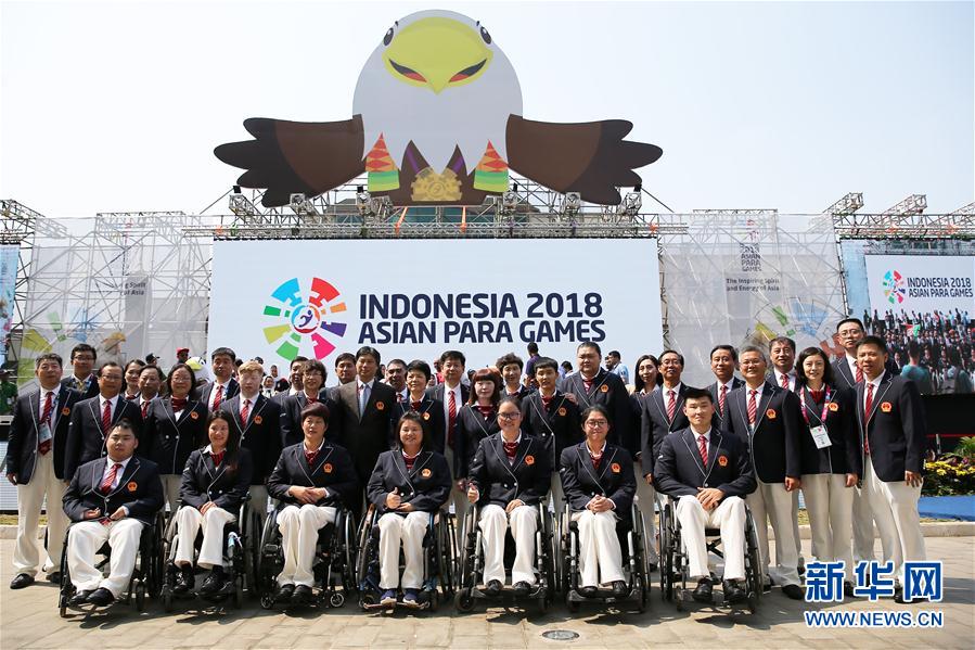 第三届亚残运会中国体育代表团在雅加达举行升旗仪式