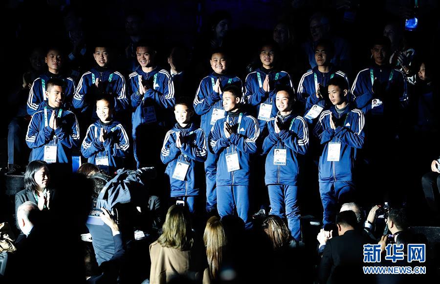 ↑10月6日,前不久在泰国发生的少年足球队失联获救事件中的孩子们在开幕式现场向观众致意。 当日,第三届夏季青年奥林匹克运动会开幕式在阿根廷首都布宜诺斯艾利斯地标建筑方尖碑前举行。 新华社记者王丽莉摄