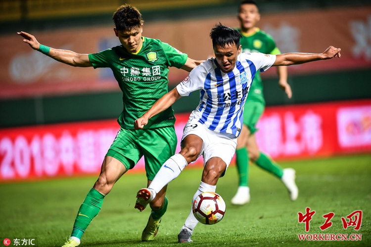 2018年10月7日,广东广州,2018中超联赛第25轮,广州富力0-3北京中赫国安。于洋 常飞亚 东方IC 钟振彬