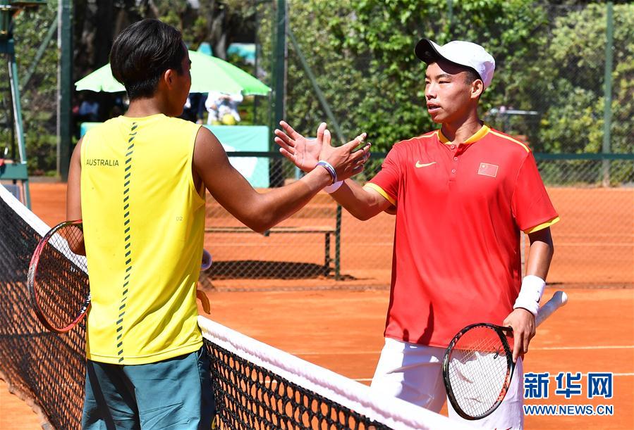 10月7日,穆韬(右)赛后与对手握手。 当日,在阿根廷布宜诺斯艾利斯举行的第三届夏季青年奥林匹克运动会网球男子单打首轮比赛中,中国选手穆韬以2比1战胜澳大利亚选手,晋级第二轮。 新华社记者贺长山摄