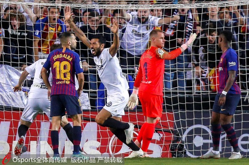 瓦伦西亚开场仅2分钟取得领先,巴萨角球防守时前点未能及时解围,加雷远点近距离破门。格德斯左路下底传中,加梅罗回敲,巴舒亚伊禁区左侧12码处低射被特尔施特根扑出远角。苏亚雷斯右路远程吊射偏出。拉基蒂奇传球,梅西25码处劲射被没收。