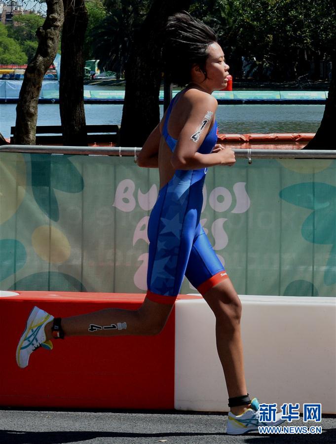 ↑10月7日,中国选手俞欣颖在决赛中。当日,在阿根廷布宜诺斯艾利斯举行的第三届夏季青年奥林匹克运动会女子铁人三项决赛中,中国选手俞欣颖以1小时02分49秒的成绩获得第20名。新华社记者贺长山摄
