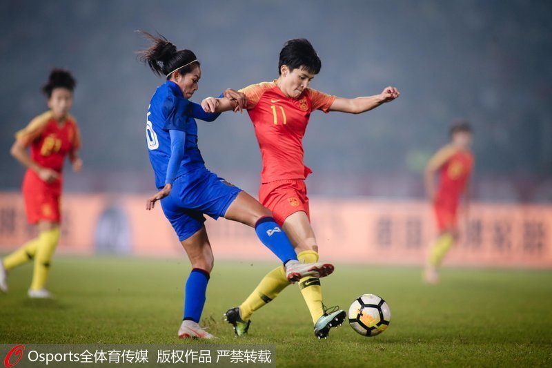 在对阵泰国队的比赛中,中国队在开局阶段就向对手施加了巨大的进攻压力,开赛仅4分钟就凭借10号李影的进球打破僵局,随后在第15分钟时9号任桂辛又奉献了一记技惊四座的吊射破门,中国队很快就取得了两球的领先优势,并一直保持到终场。