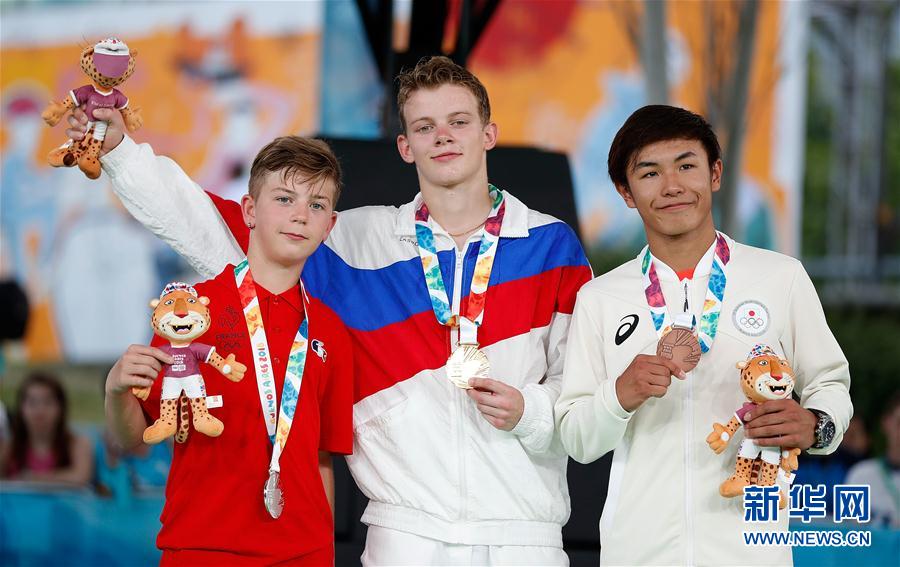 ↑10月8日,俄罗斯选手Bumblebee(中)、法国选手Martin(左)与日本选手Shigekix在颁奖仪式上。 当日,在阿根廷布宜诺斯艾利斯举行的第三届夏季青年奥林匹克运动会体育舞蹈霹雳舞男子决赛中,俄罗斯选手Bumblebee以4比0战胜法国选手Martin,夺得冠军。霹雳舞是本届青奥会新增项目。 新华社记者王丽莉摄