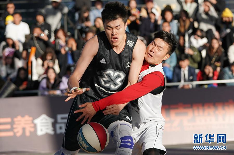 10月9日,“NO WHO WHO”队球员李琳(左)在比赛中突破nwy队球员张景力的防守。 当日,2018年3X3黄金联赛全国总决赛在北京举行。最终,“NO WHO WHO”队获得男子组冠军,山东魏桥队获得女子组冠军。 新华社记者鞠焕宗摄
