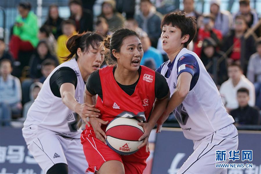 10月9日,“今晚打老虎”队球员于红俊(中)在比赛中带球进攻。 当日,2018年3X3黄金联赛全国总决赛在北京举行。最终,“NO WHO WHO”队获得男子组冠军,山东魏桥队获得女子组冠军。 新华社记者鞠焕宗摄