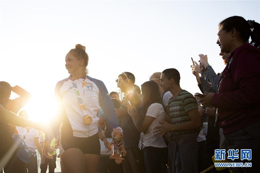 10月9日,获得冠军的希腊组合克里斯蒂娜在颁奖仪后。 当日,在阿根廷布宜诺斯艾利斯举行的第三届夏季青年奥林匹克运动会赛艇项目女子双人单桨决赛中,希腊组合玛丽亚/克里斯蒂娜夺得冠军。 新华社记者李明摄