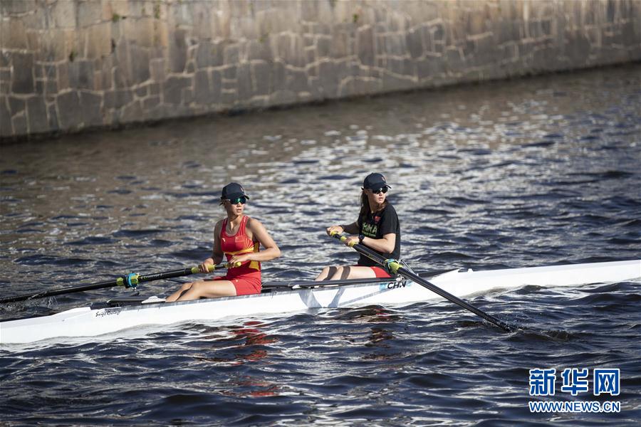 10月9日,中国选手李丹/孙红静(左)在半决赛前热身。 当日,在阿根廷布宜诺斯艾利斯举行的第三届夏季青年奥林匹克运动会赛艇项目女子双人单桨决赛中,中国选手李丹/孙红静以1分45秒85的成绩获得第四名。 新华社记者李明摄