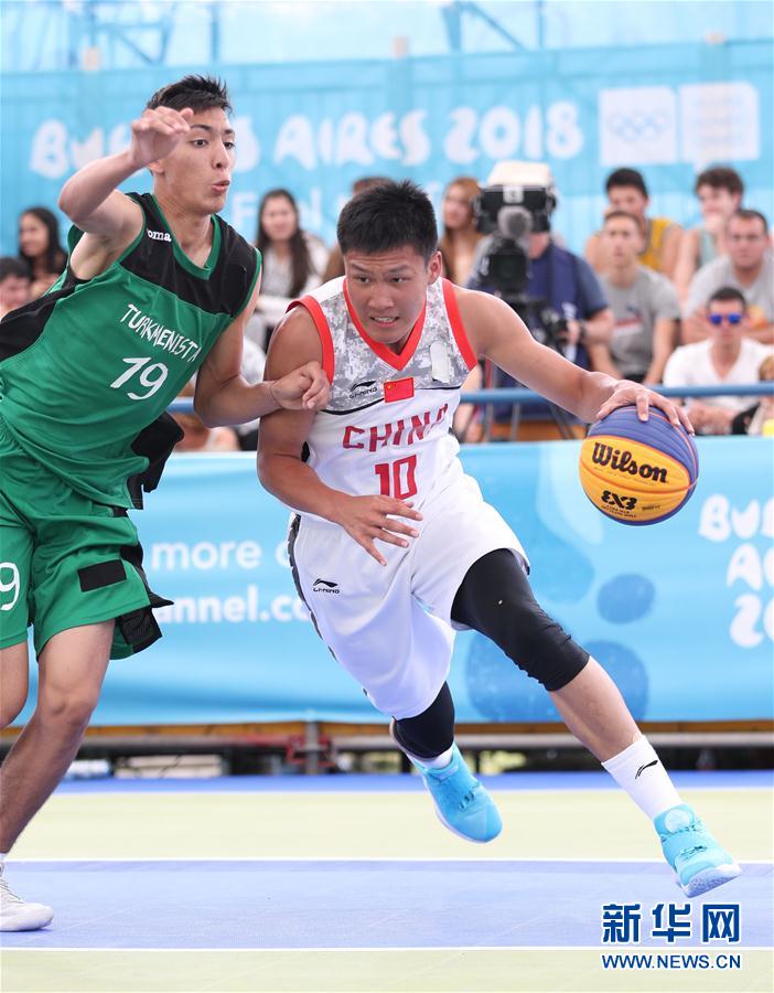 10月9日,中国队球员王子鹏(右)在比赛中突破。 当日,在阿根廷布宜诺斯艾利斯举行的第三届夏季青年奥林匹克运动会三人篮球项目男子组预赛A组比赛中,中国队通过加时赛以16比14战胜土库曼斯坦队。 新华社记者孟永民摄