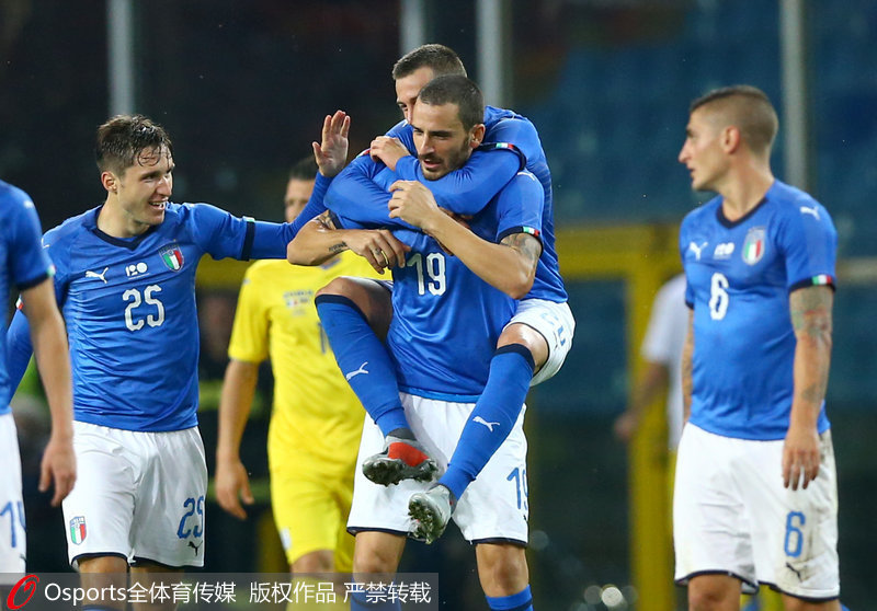 下半场易边再战,第55分钟,意大利打破僵局!意大利发动进攻,右路贝尔纳代斯基拿球内切后低射下角,门将倒地伸手未能将球没收,皮球慢慢滚进球门!意大利1-0乌克兰!