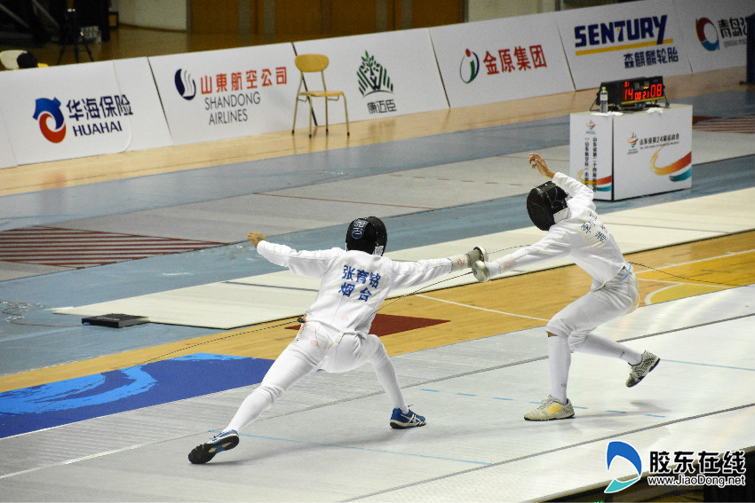 赛场上,烟台击剑运动员奋勇拼搏,充分发挥技战术水平,每每得分,都引得场边观众鼓掌、呐喊、喝彩;比赛胶着阶段,烟台体育代表团成员整齐的呐喊助威声响彻全场,充分展现了烟台体育代表团齐心协力的精神风貌。图为比赛现场。图文/孙宗顺