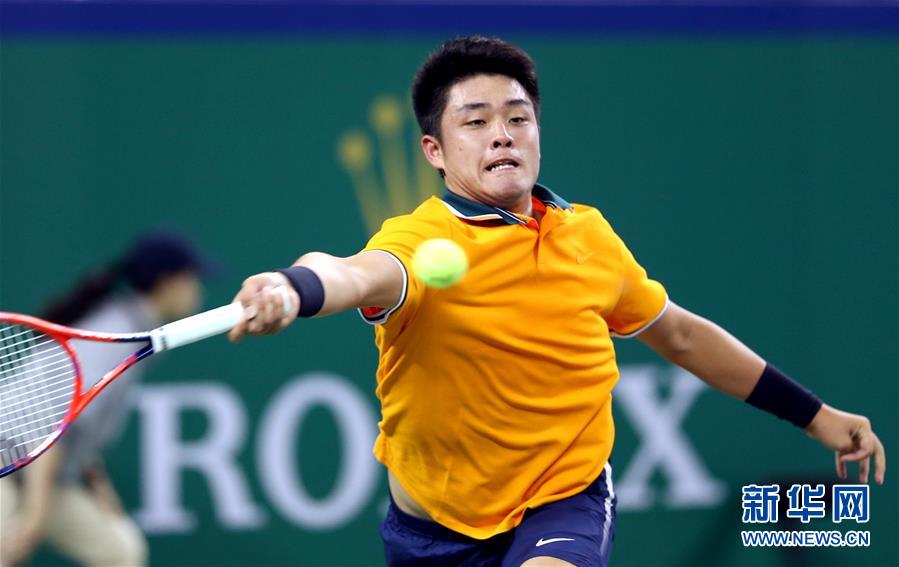 10月10日,吴易昺在比赛中回球。 当日,在2018年上海大师赛男子单打第二轮比赛中,中国选手吴易昺以1比2不敌日本选手锦织圭,无缘下一轮。 新华社记者凡军摄