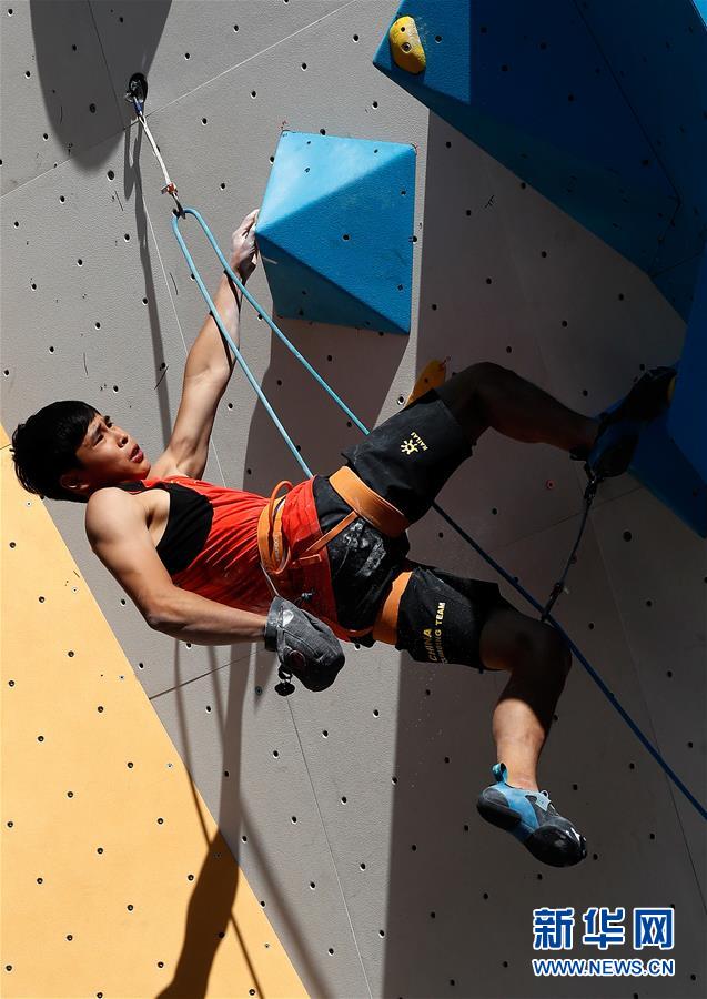 10月10日,中国选手潘愚非在攀岩男子全能决赛难度赛中。 当日,在阿根廷布宜诺斯艾利斯举行的第三届夏季青年奥林匹克运动会攀岩男子全能决赛中,中国选手潘愚非获得第五名。 新华社记者王丽莉摄