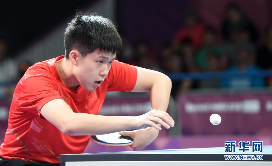 10月10日,中国选手王楚钦在比赛中回球。 当日,在阿根廷布宜诺斯艾利斯举行的第三届夏季青年奥林匹克运动会乒乓球男子单打决赛中,中国选手王楚钦以4比1战胜日本选手张本智和,获得冠军。 新华社记者李俊东摄