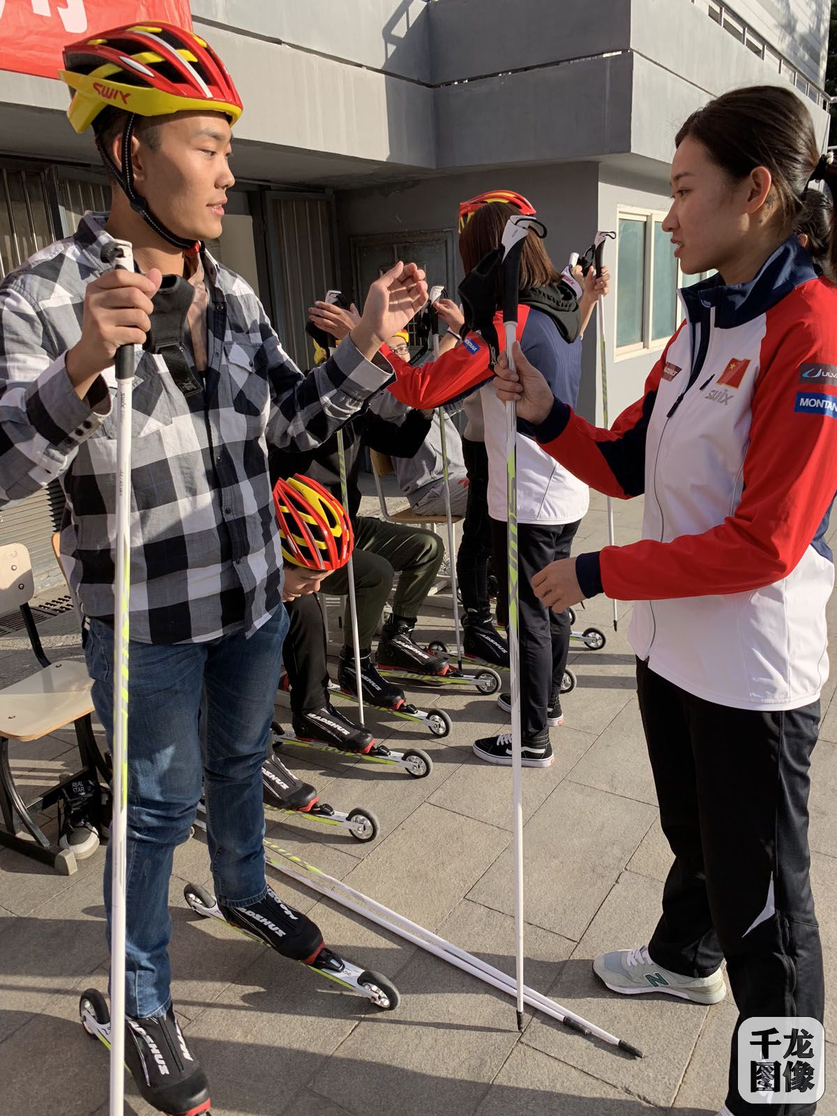 10月9日,由北京市滑雪协会承办的“一校一故事、越野越精彩”全国高校滑轮推广系列活动在北京清华大学拉开帷幕。图为学员们在教练的带领下学习越野滑雪。千龙网发 曾静摄