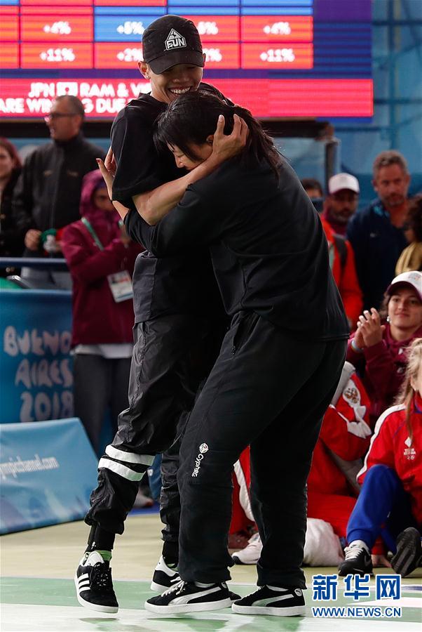 ↑10月11日,Ram(日本,前右)/B4(越南)庆祝夺冠。新华社记者王丽莉摄