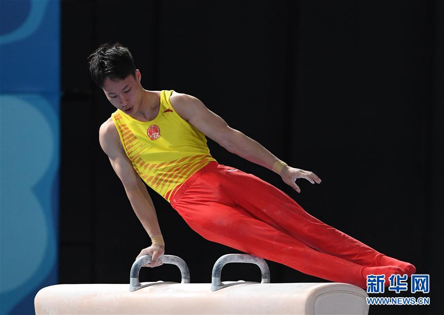 ↑10月11日,尹德行在鞍马比赛中。 新华社记者李俊东摄